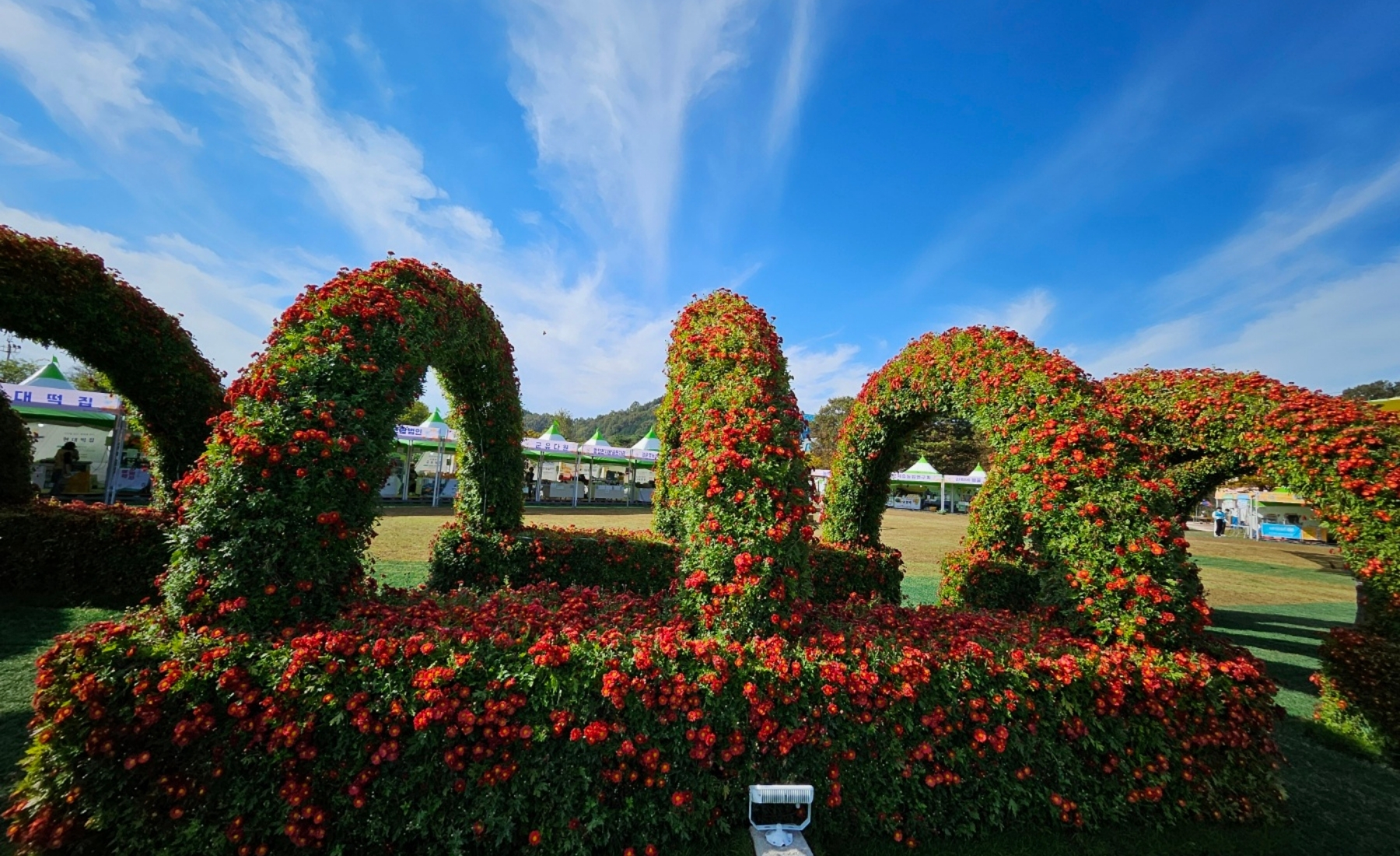 함평국향대전은 '마법의 국향랜드' 테마에 맞춰 환상적인 볼거리로 가득해요. 대형 국화 조형물부터 시작해볼까요? 회전목마, 대관람차, 국화컵 등 놀이공원을 연상시키는 조형물들이 국화로 재탄생했어요. 33개의 다양한 화단에는 국화 분재와 예술적인 작품들이 전시되어 있어 눈이 즐거울 거예요.