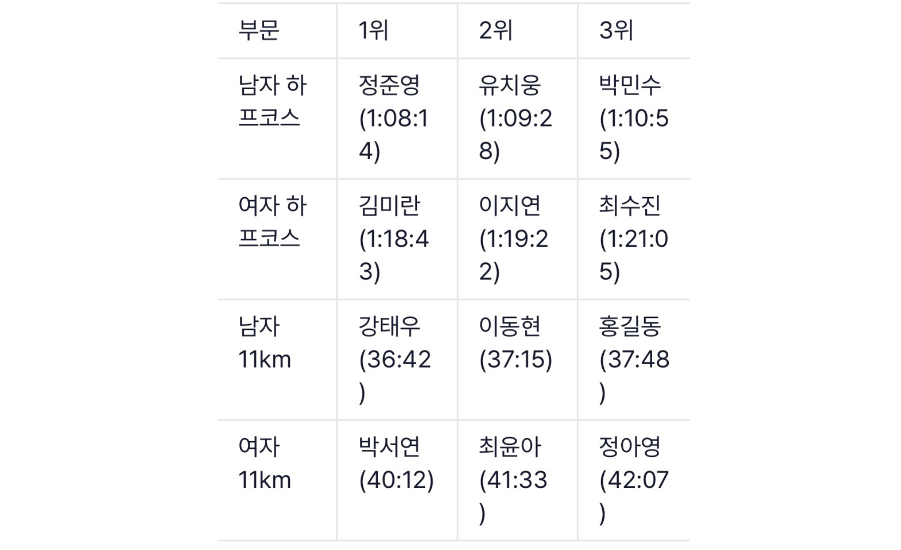 여성 참가자들의 활약도 두드러졌어요. 전체 참가자 중 여성 비율이 작년 32%에서 올해는 38%로 크게 증가했답니다. 여자부 1위는 전직 국가대표 출신 김미란 씨가 1시간 18분 43초로 차지했고요.